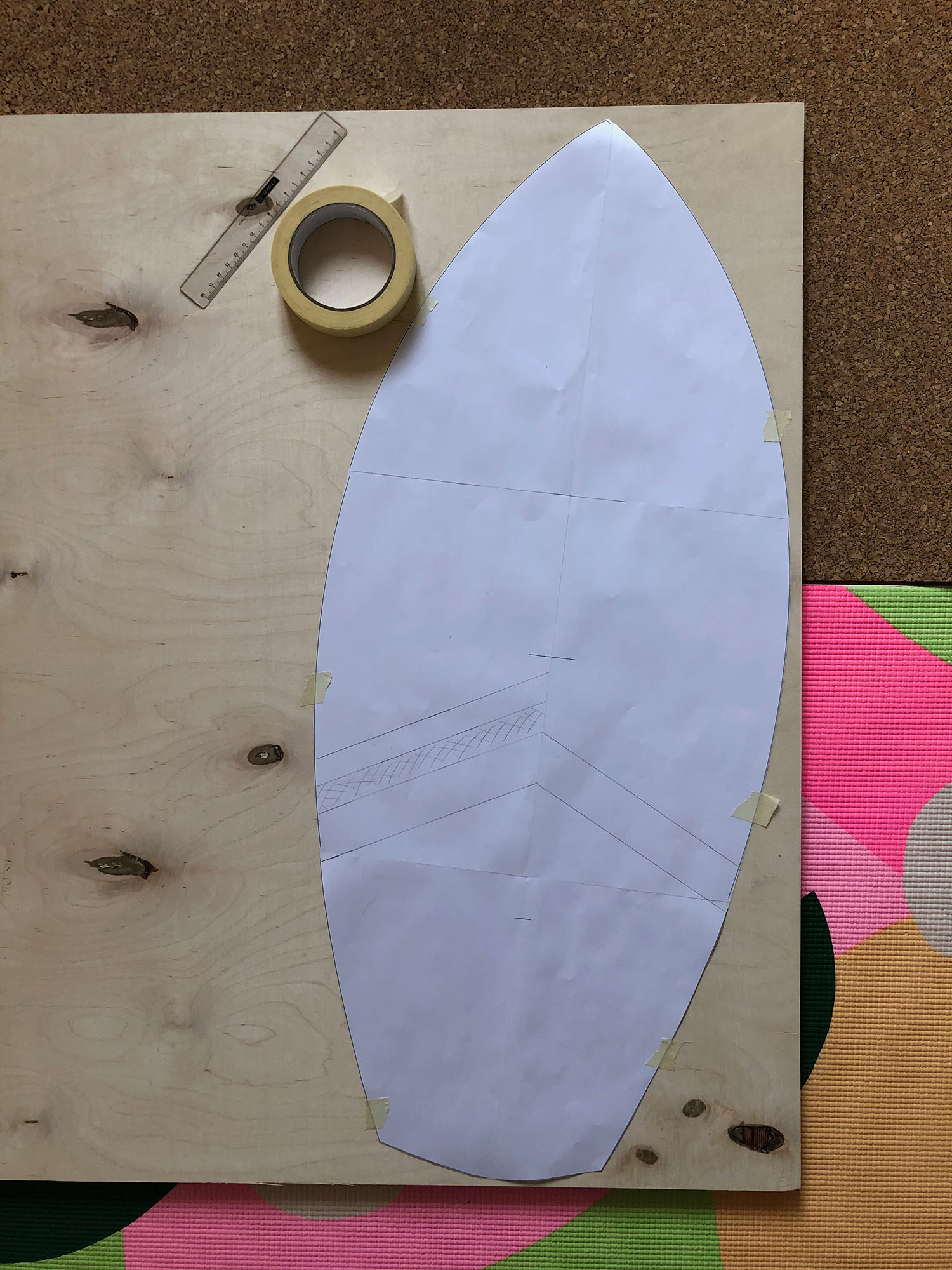 - Übertrage deine Vorlage auf das Board. Für filigrane Zeichnungen eignet sich Blaupapier zum Pauschen sehr gut. Linien und Flächen lassen sich mit Kreppband abkleben.