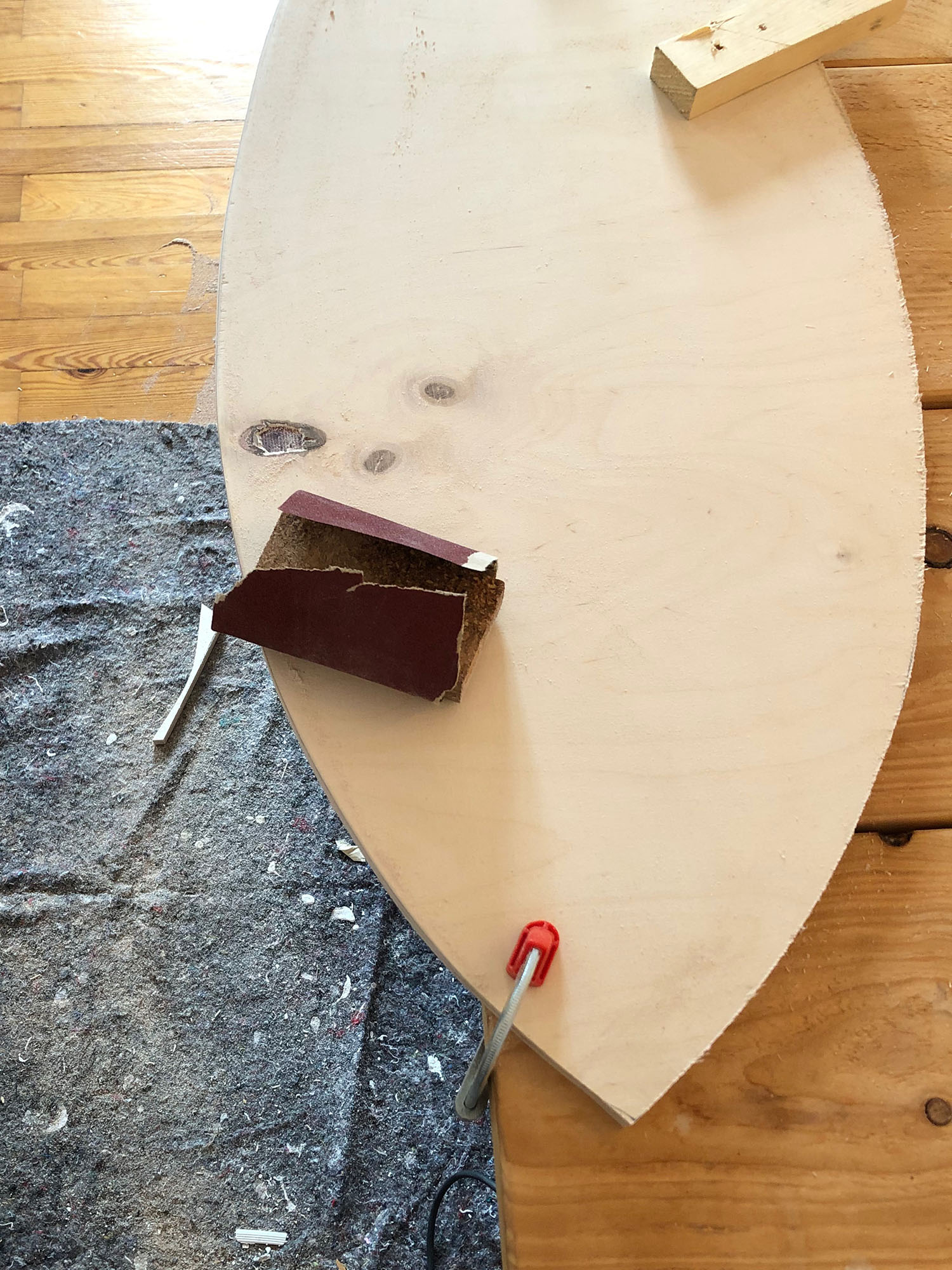 - Schleife die Kanten erst mit dem groben Schleifpapier ab und anschließend nochmal die komplette Fläche + Kanten mit der feineren Körnung.