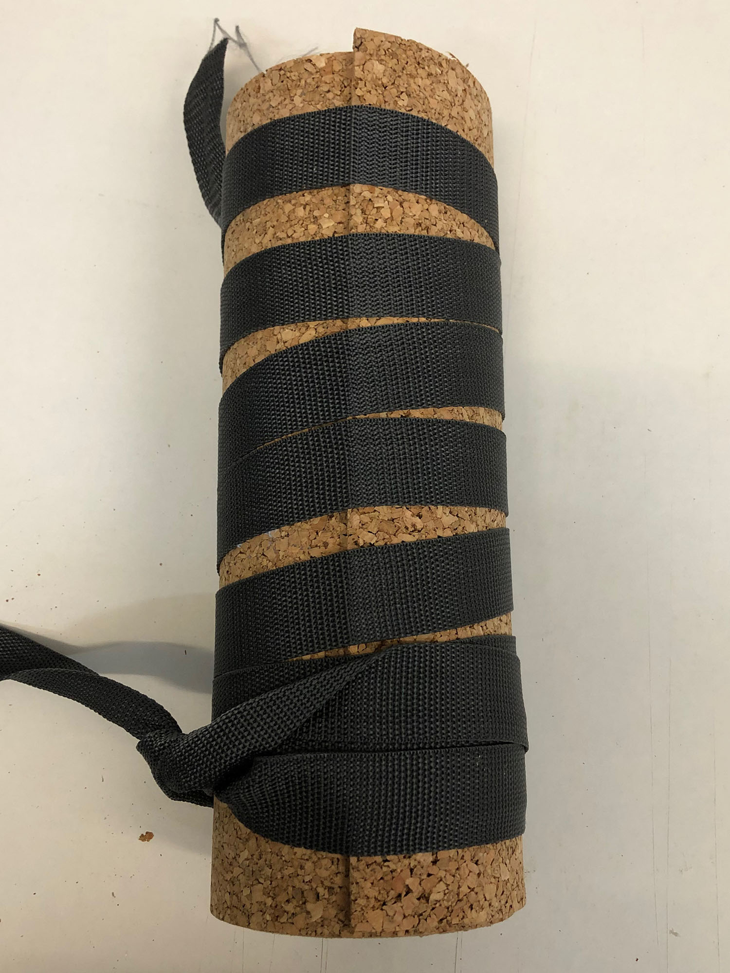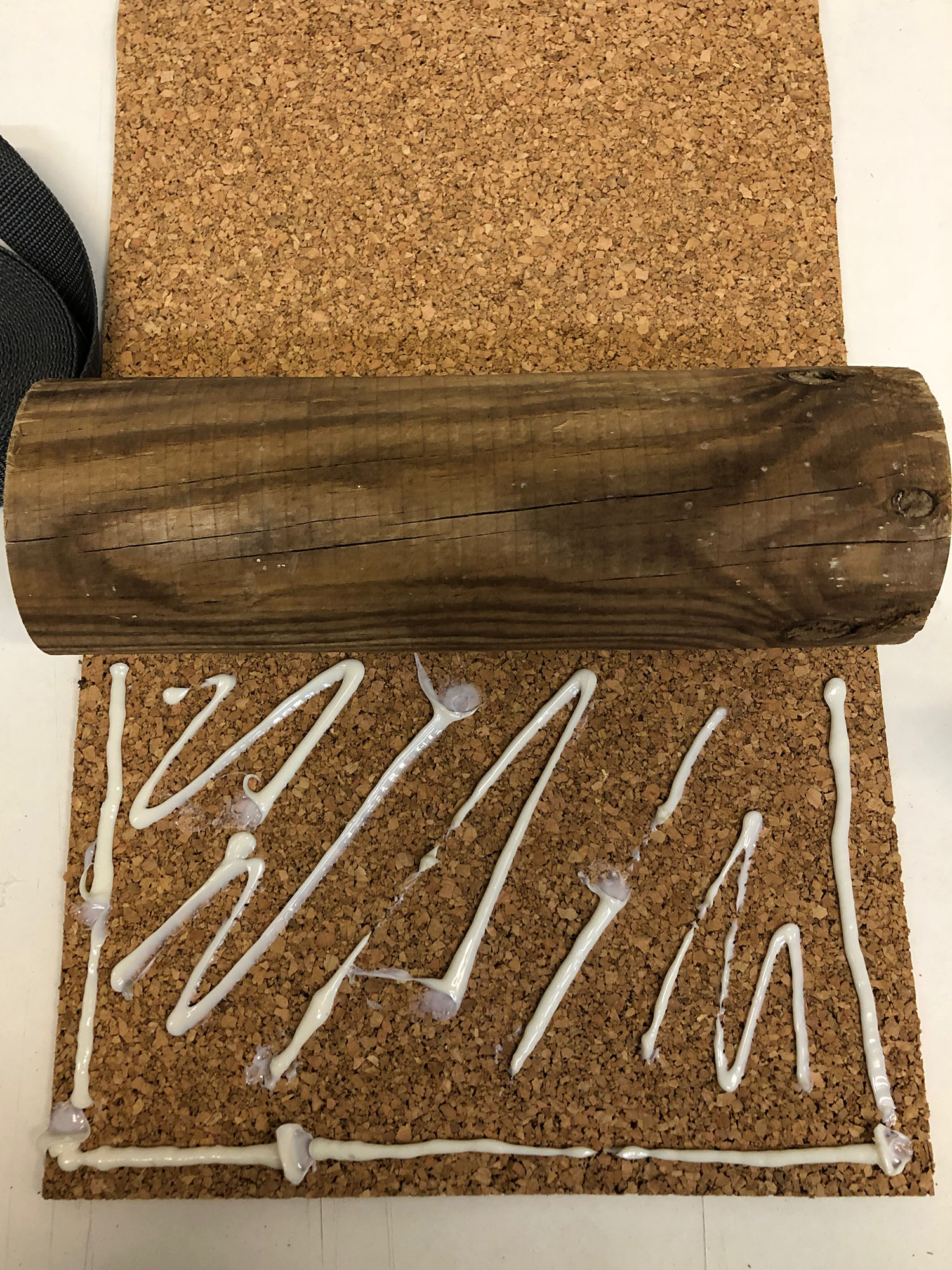 - Zuletzt bestreichst du die Korkmatte mit Holzleim und wickelst diese fest um die Holzrolle. Zum Trocknen kannst du noch eine Schnur mehrmals um die Rolle wickeln, damit der Kleber fest anzieht. Schnur entfernen und ab auf die nächste Welle!