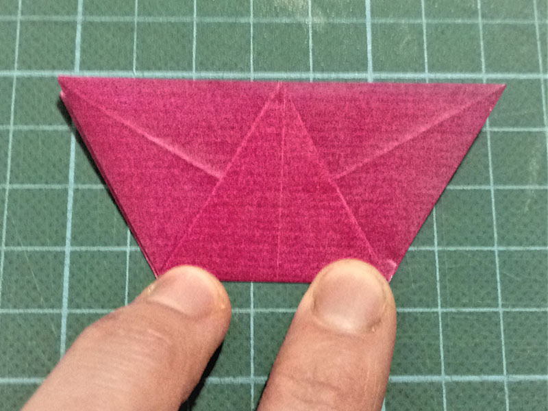 - Falte die Spitze des Dreiecks nach oben und öffne sie wieder. Es geht hier nur um den Falz.