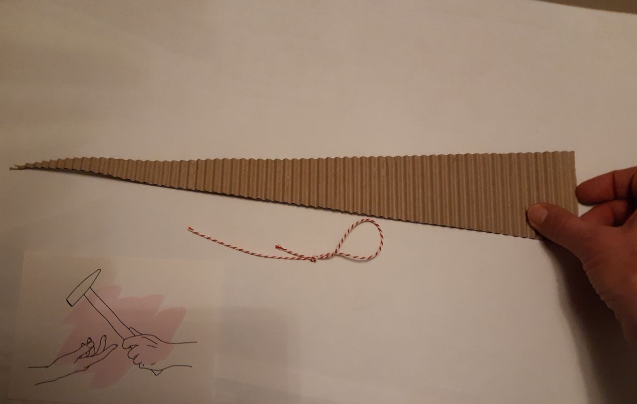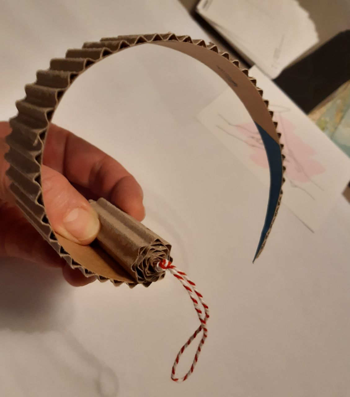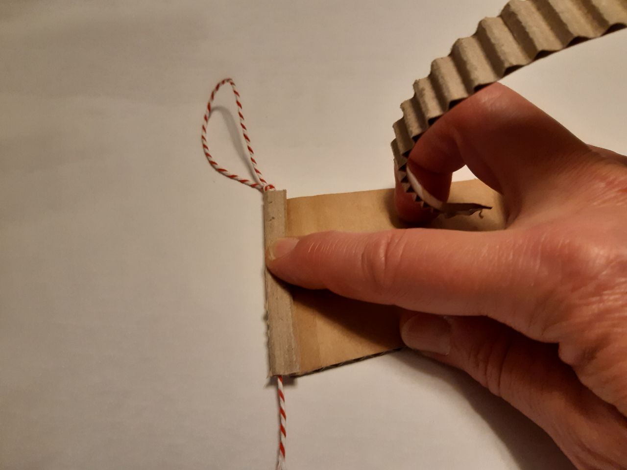 - Nehme dir das zugeschnitte Bändchen und die Wellpappe.