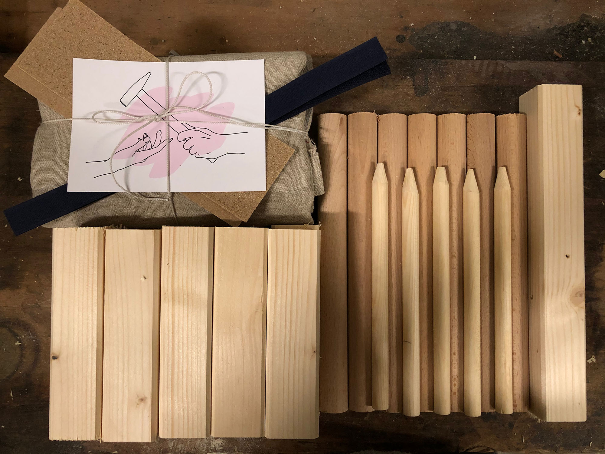 - Wurfhölzer: 6 Rundhölzer (ø ca. 30 mm, Länge 25 cm)