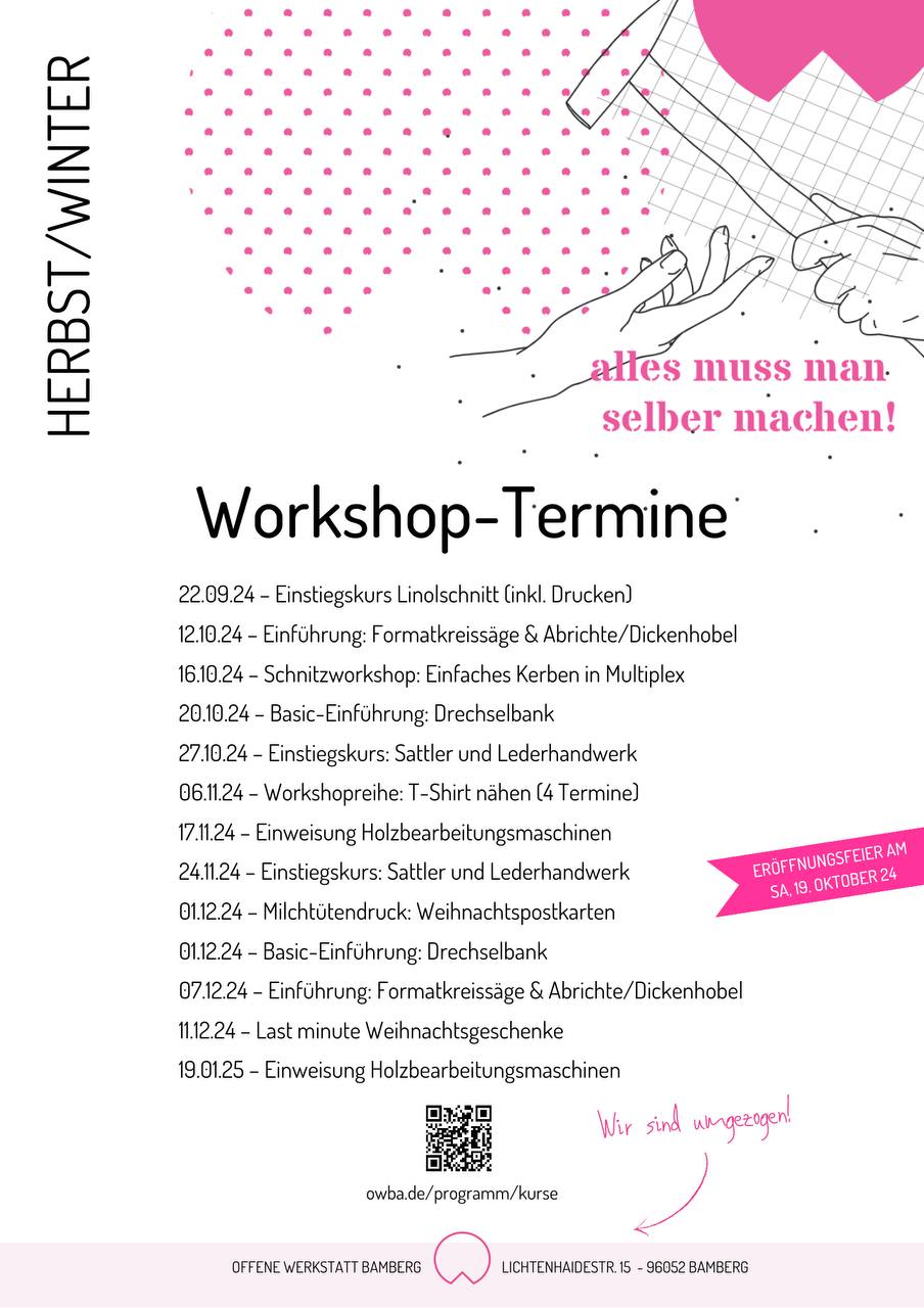 Ab sofort beginnen die Planungen für den Umzug. Der reguläre Werkstattbetrieb ist somit nicht mehr möglich. Wer mit anpacken möchte, ist herzlich eingeladen. Ein erstes großes Umzugsplanungstreffen findet am Donnerstag, 04.04.2024, ab 19 Uhr in den Werkstatträumen statt. Wir werden besprechen und koordinieren, was von wem bis wann noch zu erledigen ist und wie wir uns die neue Werkstatt vorstellen.