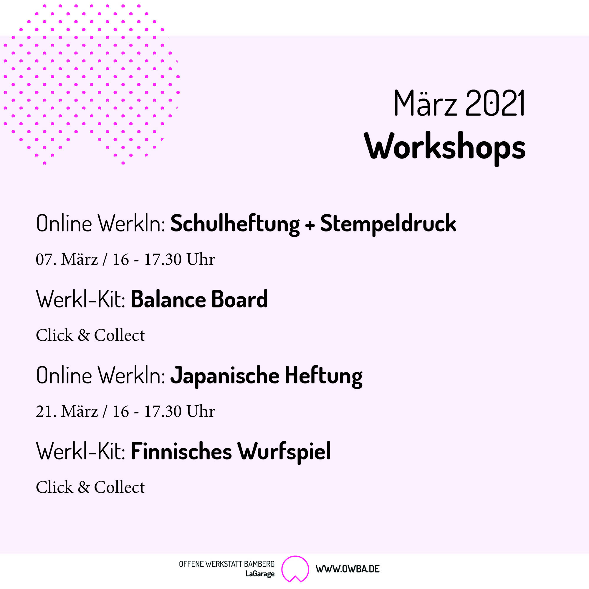 Bis dahin wird es leider keine Workshops geben können. Aber die Planungen für ab August sind schon in vollem Gange. Freu dich auf:
